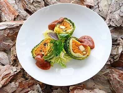 Freuen Sie sich auf eine bunte Auswahl köstlicher, frisch zubereiteter vegetarischer Speisen – von knackigen Salaten über herzhafte warme Gerichte bis hin zu feinen kleinen Häppchen.