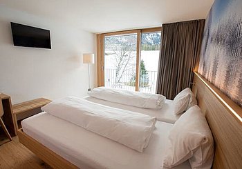 Ob Säntis oder Churfirsten – grosse Fenster bringen das Toggenburg direkt ins Zimmer.